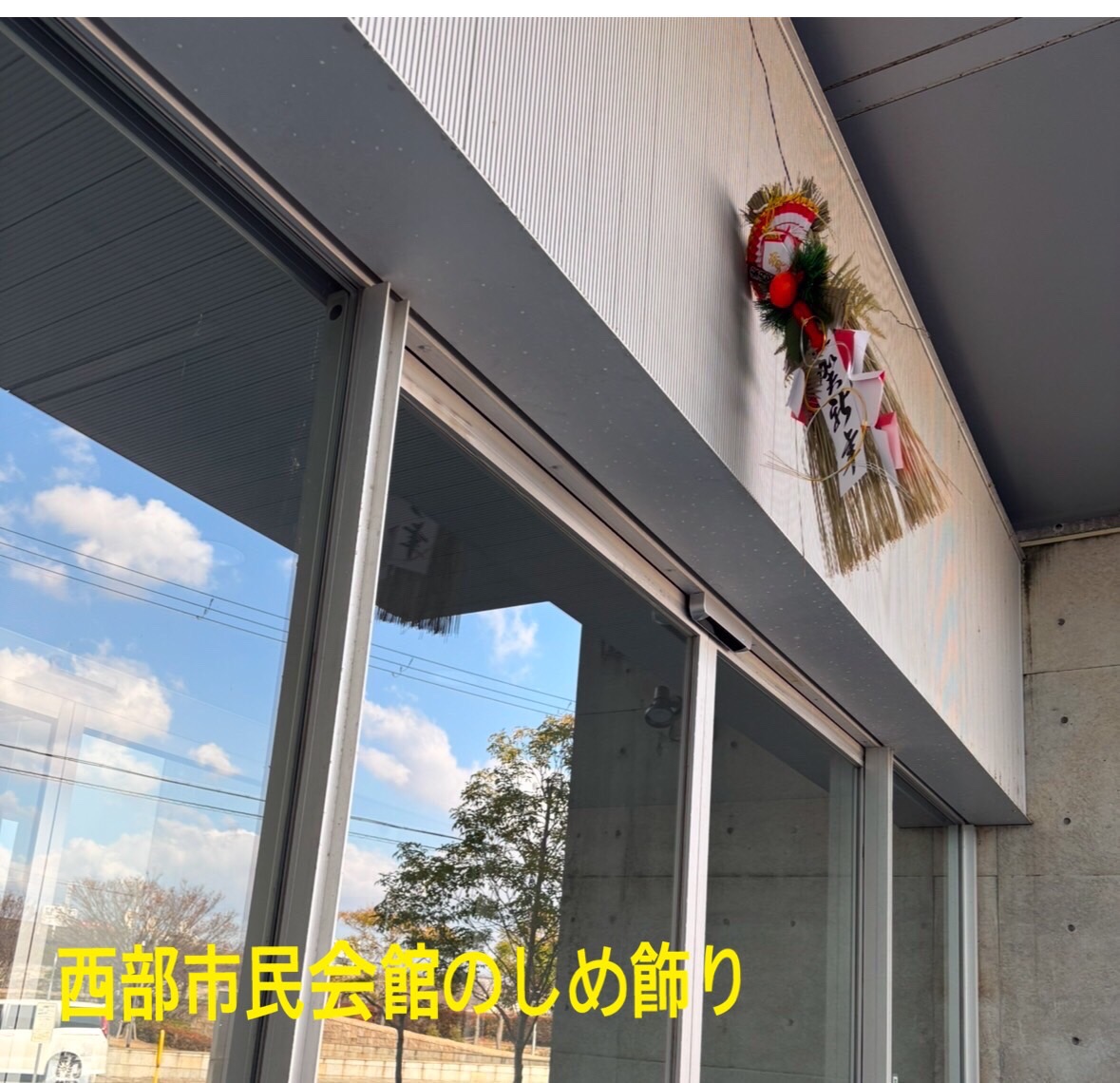 ちょっとしめ飾りが、風になびいて斜めに😝