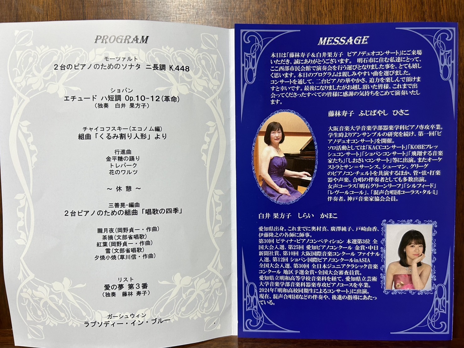 先日のピアノデュオコンサートの感動もまだ冷めやらぬ今日、「コンサートご来場のお礼に」と藤林先生、果方子さんお二人揃ってのご挨拶がありました。
